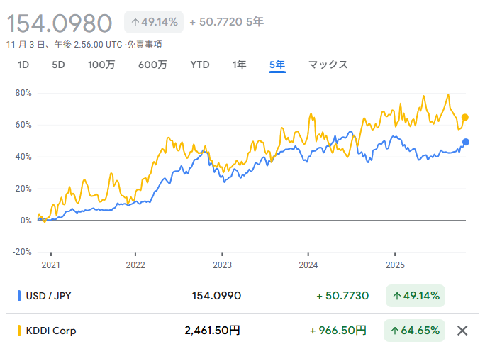 KDDIは「円安メリット株」でも「円高デメリット株」でもない、為替中立型の代表銘柄。
