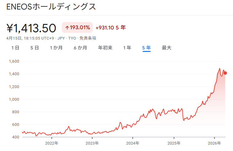 原油価格上昇時に収益改善。株価も比較的安定して上昇。